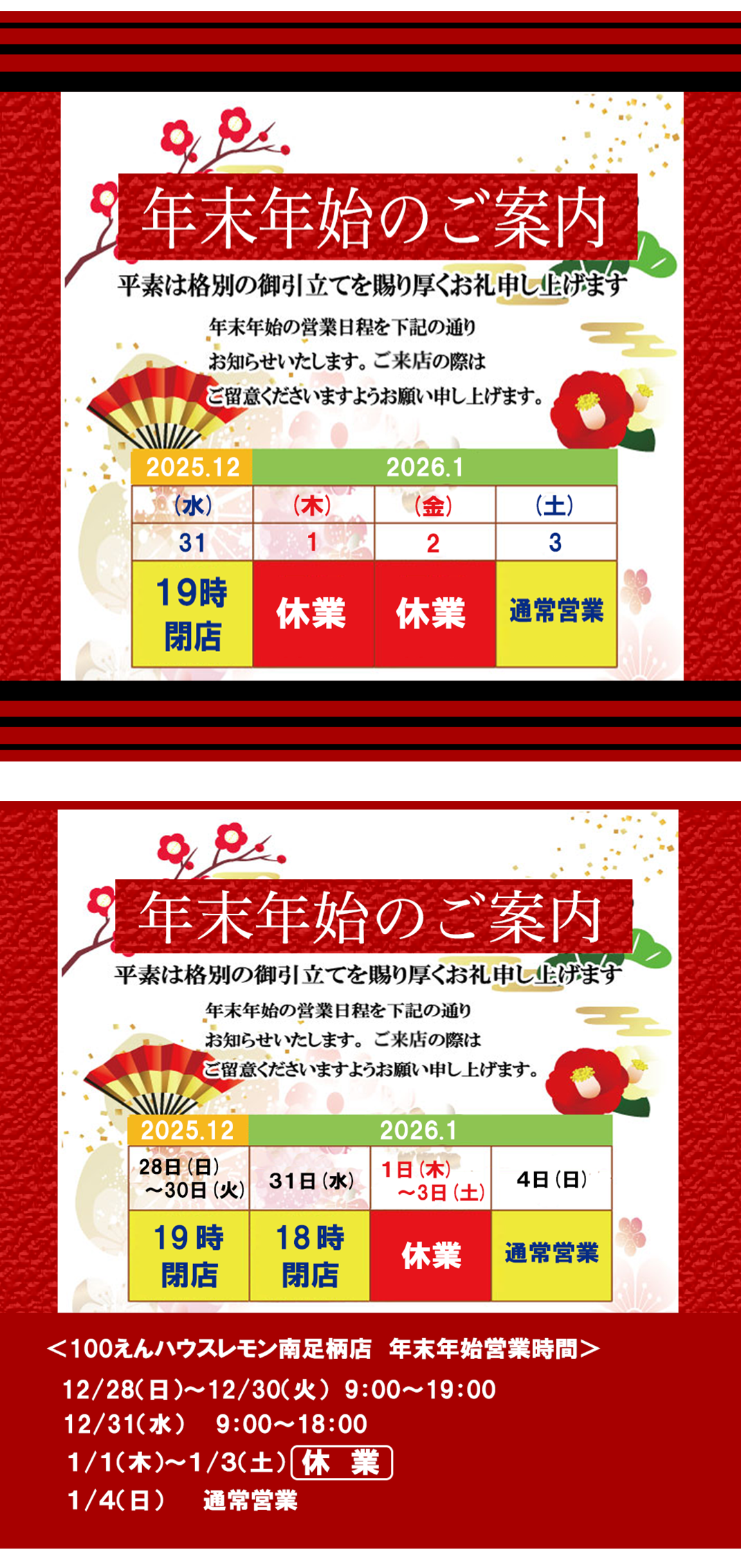 ホームHome 新アイテムItem 店舗Shop レモンについてAbout lemon 新着情報News&Topics 求人情報Recruit LEMONトップ新着情報\\年末年始 営業時間のお知らせ// 新着情報News&Topics お知らせ2025.12.16 \\年末年始 営業時間のお知らせ//